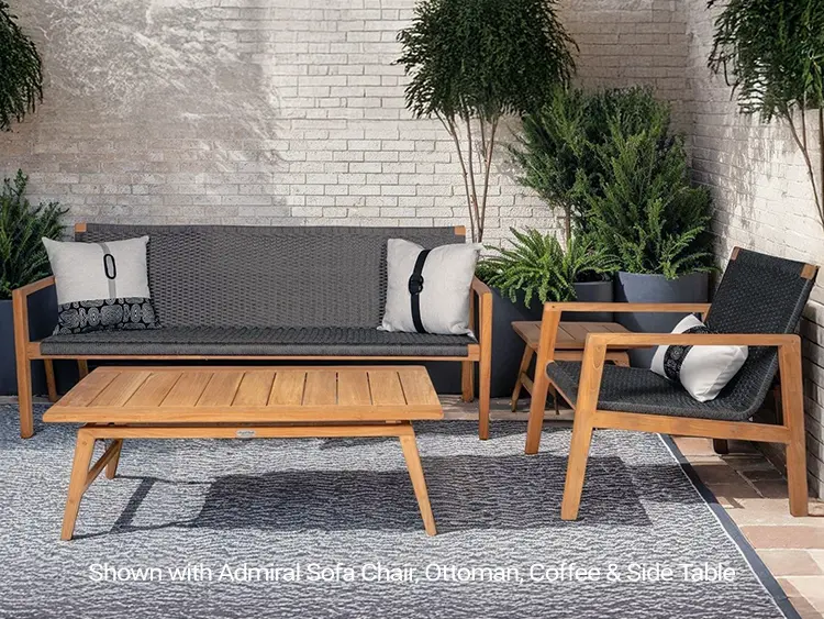 The Admiral Deep Seating Club Chair is a very comfortable contemporary chair wrapped with synthetic rope. High end features such as “finger Joints” in armrest. Very sturdy and well-suited for both residential and commercial use. All Stainless-steel hardware. Rope material is made from high quality synthetic wicker, covered in a 16-spindle acrylic nylon sock, to maximize strength for outdoor use for decades.