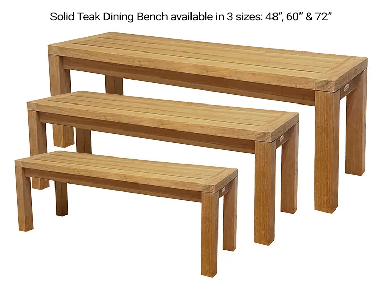 Complete your outdoor dining set with the Royal Teak Collection Dining Bench. Made from premium, weather-resistant teak wood, this bench offers lasting strength and a beautiful natural finish that pairs perfectly with Family, Gala, and Comfort tables. Its clean, classic design provides comfortable seating for family meals and gatherings, while the durable construction ensures years of outdoor enjoyment. Ideal for patios, decks, and garden dining areas.