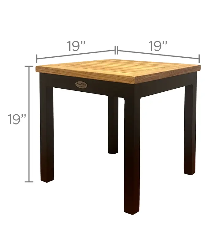 Sleek and Modern seating group featuring a sturdy black powder coated aluminum frame, handwoven all weather rope and warm teak finish accents. This set blends contemporary style with durable comfort.