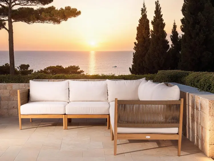 Fully modular, the San Lucas sofa invites endless customization—arrange it as an intimate loveseat, a generous L-shaped sectional, or a streamlined straight sofa that comfortably seats up to six. Deep, plush cushions upholstered in solution-dyed acrylic (available in a single, timeless neutral shade) offer luxurious comfort and exceptional fade resistance, paired with quick-dry foam that shrugs off rain and poolside splashes.