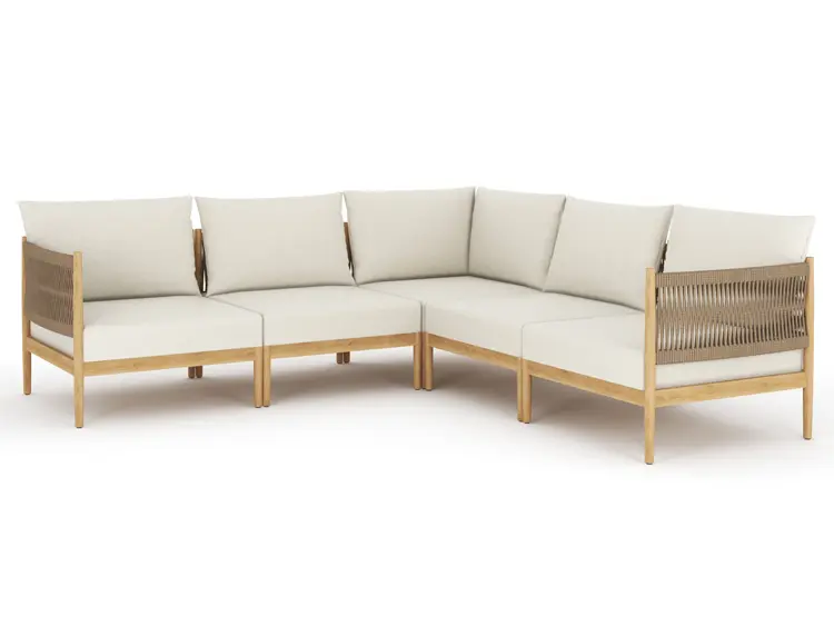 Fully modular, the San Lucas sofa invites endless customization—arrange it as an intimate loveseat, a generous L-shaped sectional, or a streamlined straight sofa that comfortably seats up to six. Deep, plush cushions upholstered in solution-dyed acrylic (available in a single, timeless neutral shade) offer luxurious comfort and exceptional fade resistance, paired with quick-dry foam that shrugs off rain and poolside splashes.